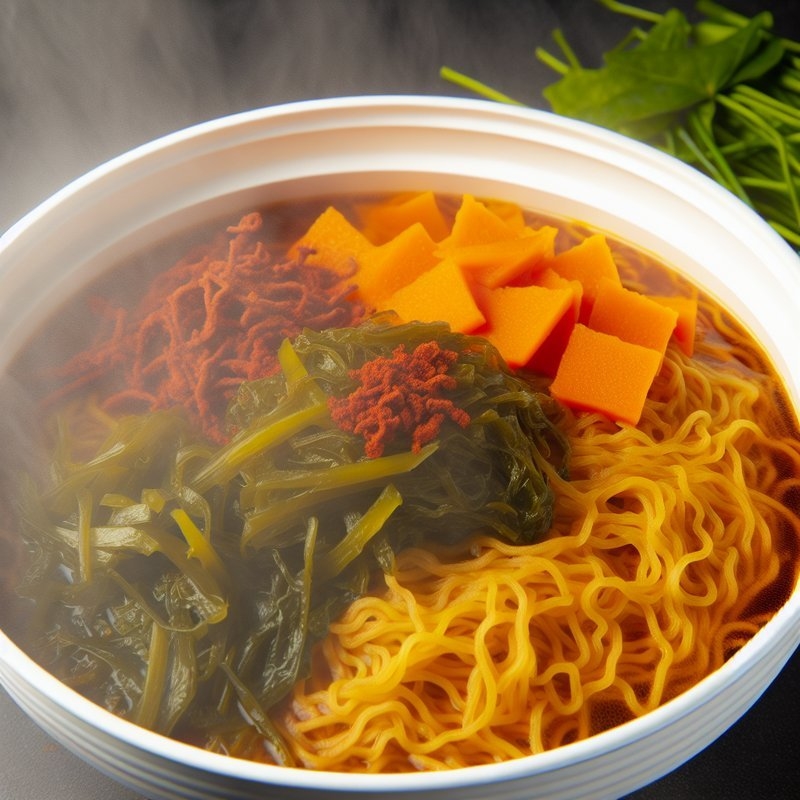 면, 당면, 소스, 조미료, 절인 겨자채, 계란을 포함한 고품질 재료들이 조화롭게 어우러져 맛있고 만족스러운 식사 경험을 선사합니다. 통에 포장되어 제품의 신선함을 유지하며, 독특한 디자인은 정통성을 더합니다.